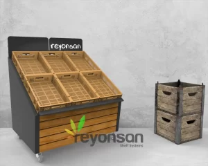 Ahşap Manav Tezgahı, doğal ve zarif bir sunum alanı sağlar. Ahşap malzeme, meyve ve sebzelerin doğal güzelliklerini ön plana çıkarır ve müşterilere samimi bir alışveriş atmosferi sunar. Ahşapın sıcak ve zarif dokusu, Manav Tezgahlarının görsel açıdan çekici olmasını sağlar. Reyonsan, kaliteli ahşap malzemeler ve özenli tasarımlarla işletmelerin ihtiyaçlarına uygun Ahşap Manav Tezgahları yapımını gerçekleştirir.